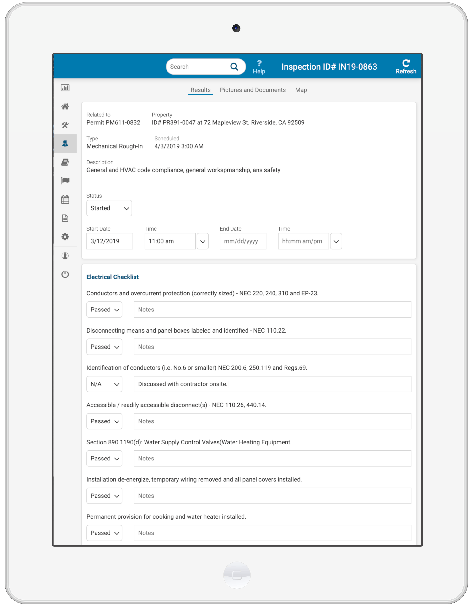 Inspectors will have the full system conveniently contained contained on the their mobile device. Inspectors will have the best of both worlds. Through the web interface they will have access to the entire record including documents, drawings and architectural attachments, and comments and notes. As they complete the inspection, the application operates like a dedicated mobile application.